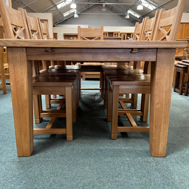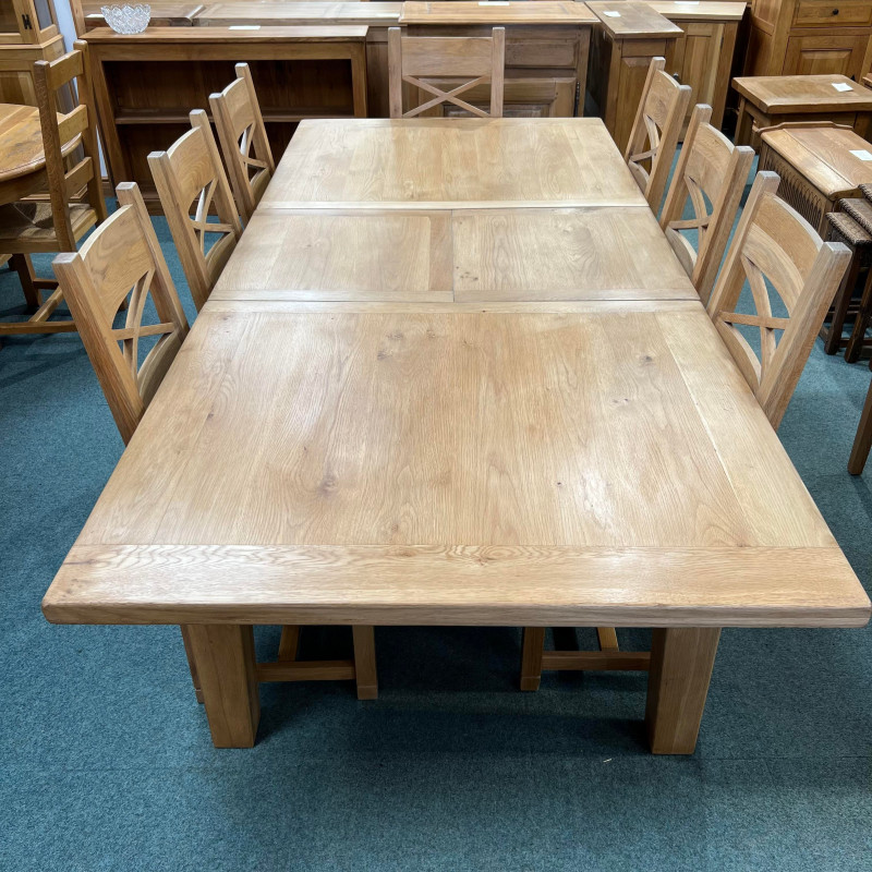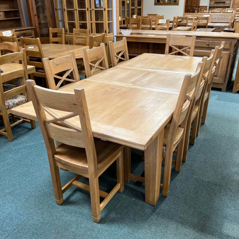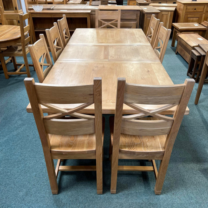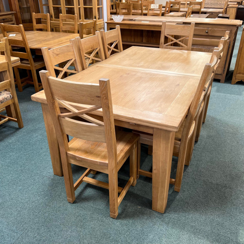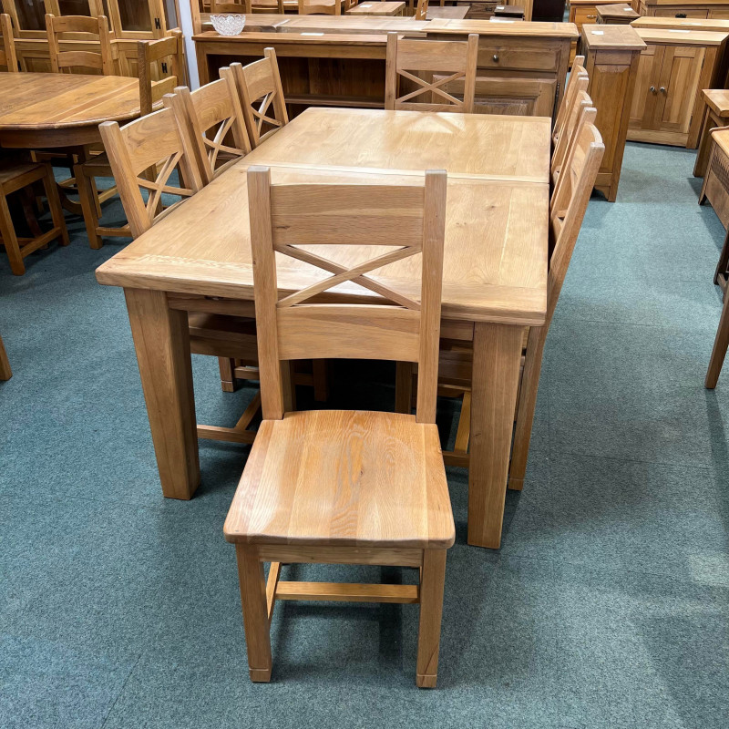 • Chairs are Solid Oak crossbacks with solid seats.