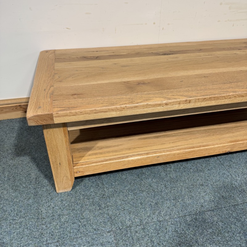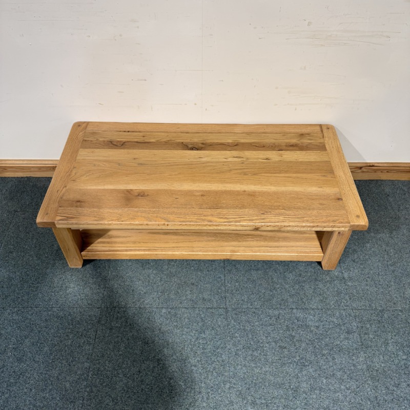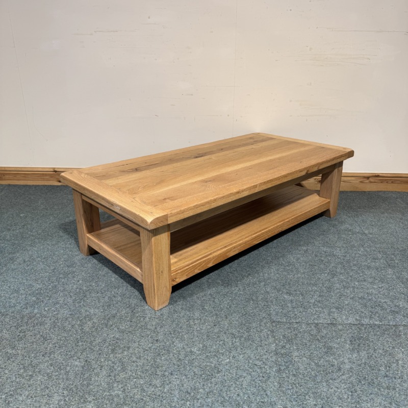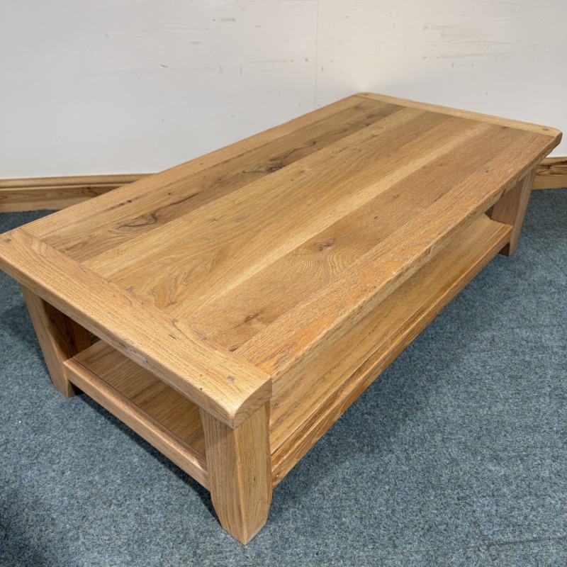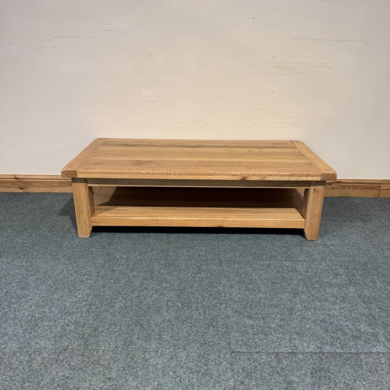 This large, oak coffee table has beautiul wood grain and is one of the lowest coffee tables we have but despite this it still features a lower shelf.
