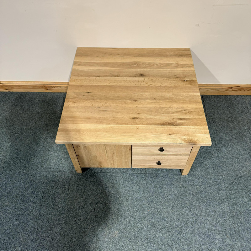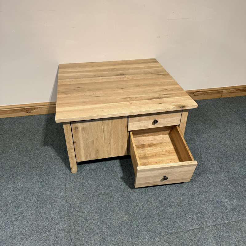 This large, solid oak coffee table has beautiful wood grain throughout. It is also double sided with good, deep drawer space.