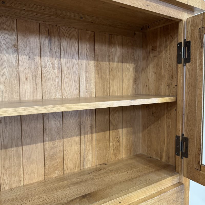 • Has 1 shelf across the top which adjusts to 3 positions and then 1 shelf in both lower cupboards which adjust to 3 positions each also.