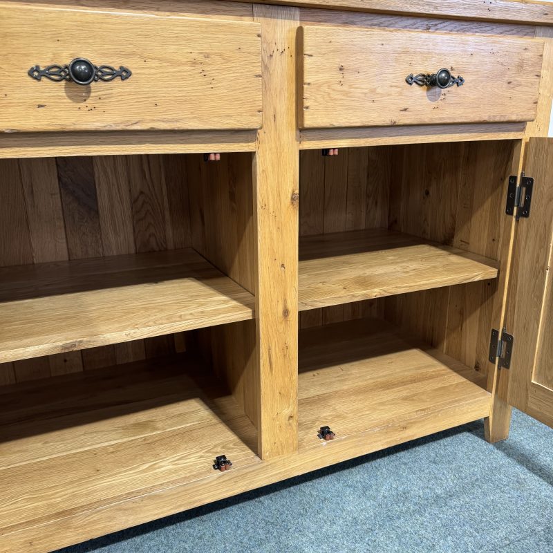 • Has 6 drawers and 4 doors, 2 of which feature bevelled glass.