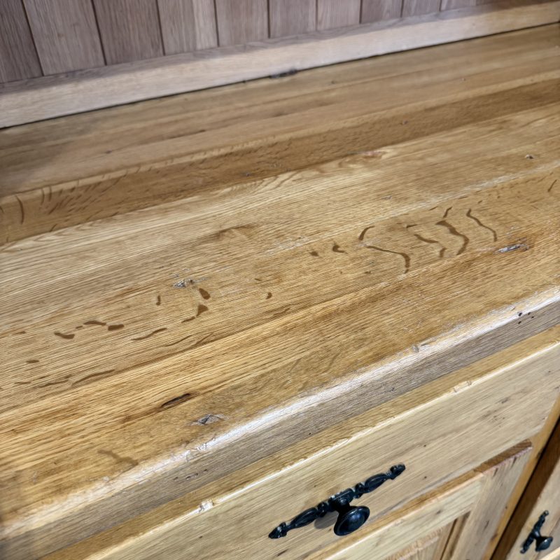On this dresser we managed to remove parts of the finish needed and balance the colour back.