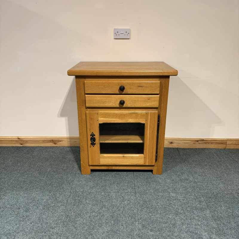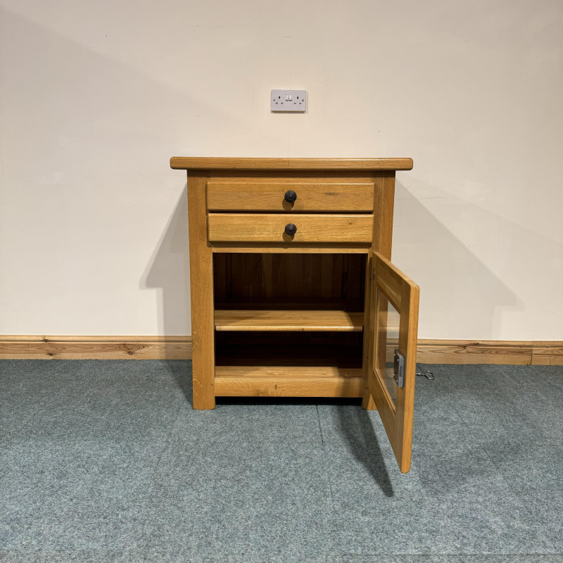 This solid oak piece is distressed and functions as a sideboard or a Hi-Fi- Cabinet with a fully adjustable shelf to fit most needs.