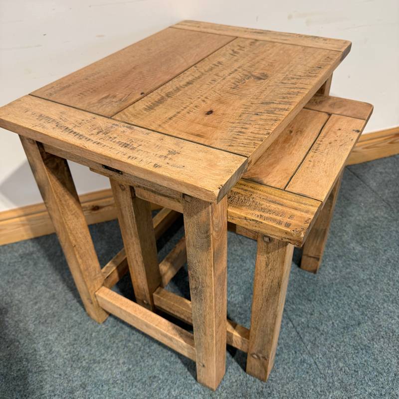 Medium Sized, Rustic, Solid Mango Wood, Nest of 2 Tables. (N116)