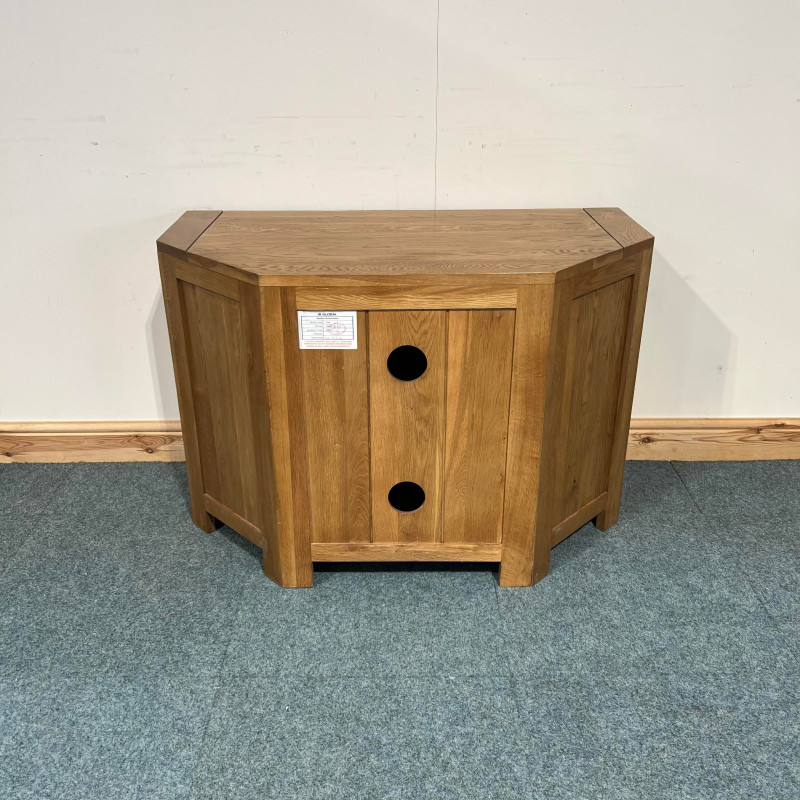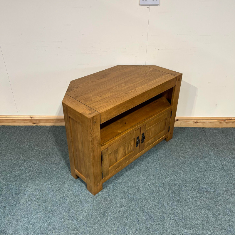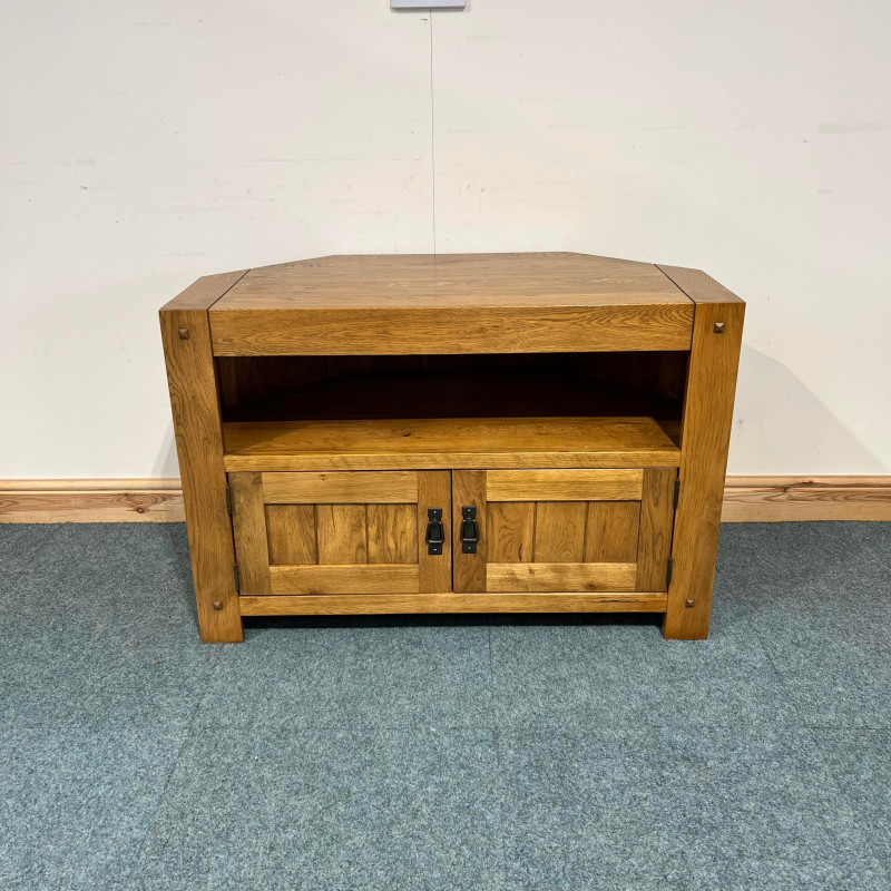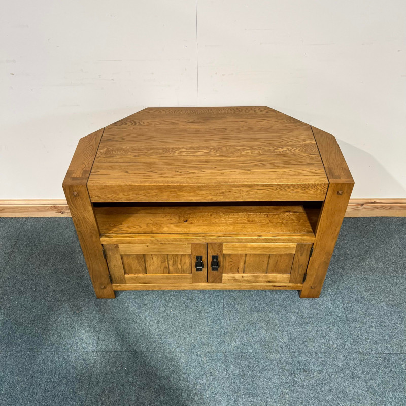 This medium sized, oak TV Unit is not too focused on just being in a corner. The wide profile allows it to be also used on a standard wall and still look the part. It also has plenty storage behind the doors. This is one of the most popular TV Units we restore.
