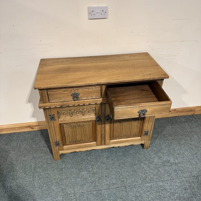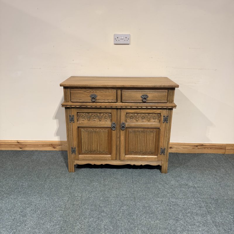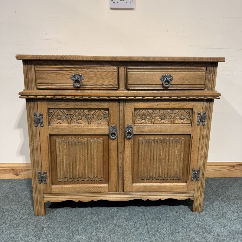 Small, Carved Oak, Old Charm Sideboard. (S289)