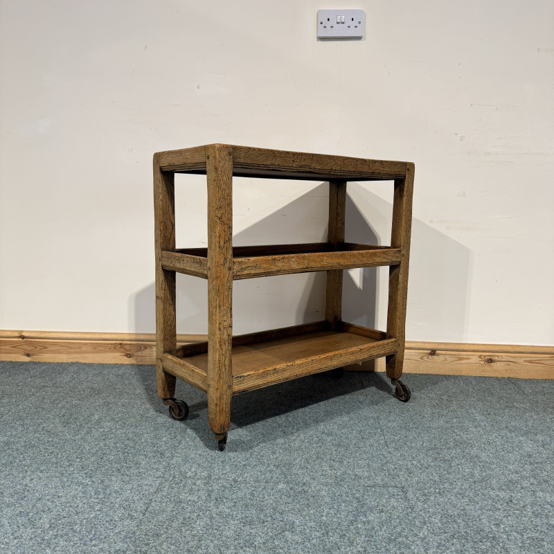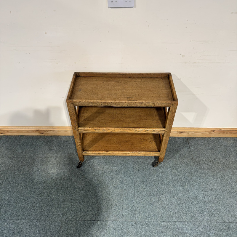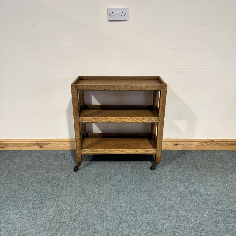 Small, Rustic Oak, Shelved Trolley. (O218)