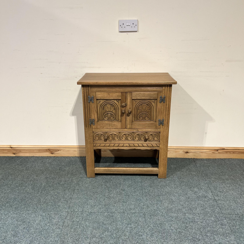 This oak sideboard has beautiful carving across the front. Could be used not only as a small sideboard but even as a telephone table or lamp table perhaps.
